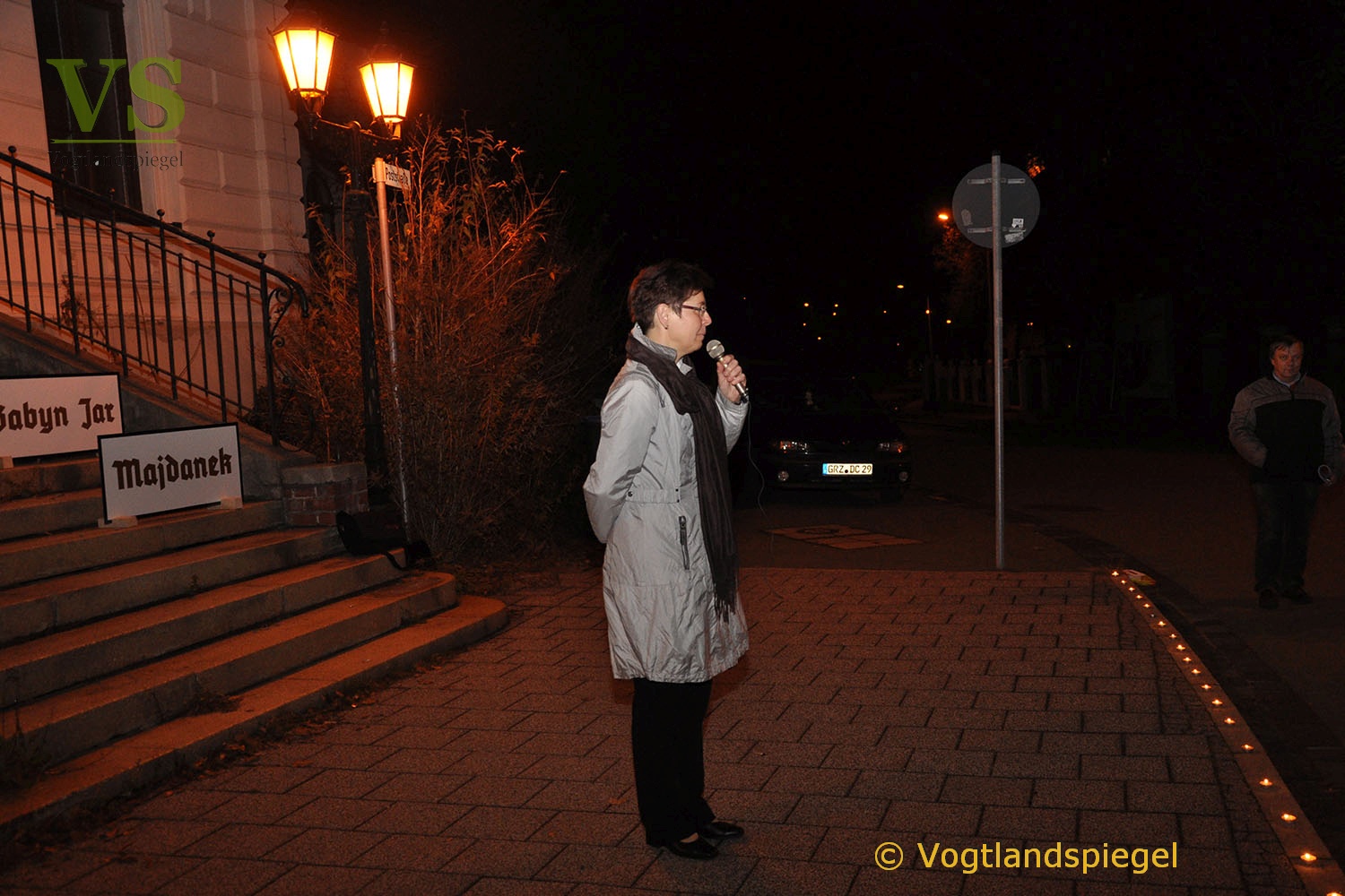 Auf dem Bahnhofsvorplatz fand in Gedenken an die Pogromnacht am 9. November 1938 eine Gedenkveranstaltung statt, die vom Verein AufAndHalt organisiert wurde – hier spricht Sozialministerin Heike Taubert (SPD) zu den Gästen der Veranstaltung