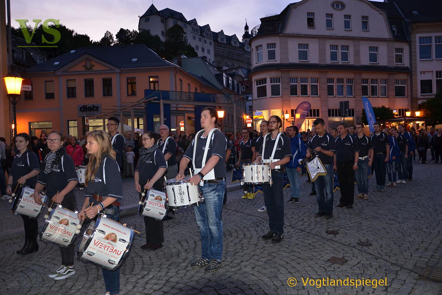 Der Greizer Fanfarenzug hat Aufstellung genommen.