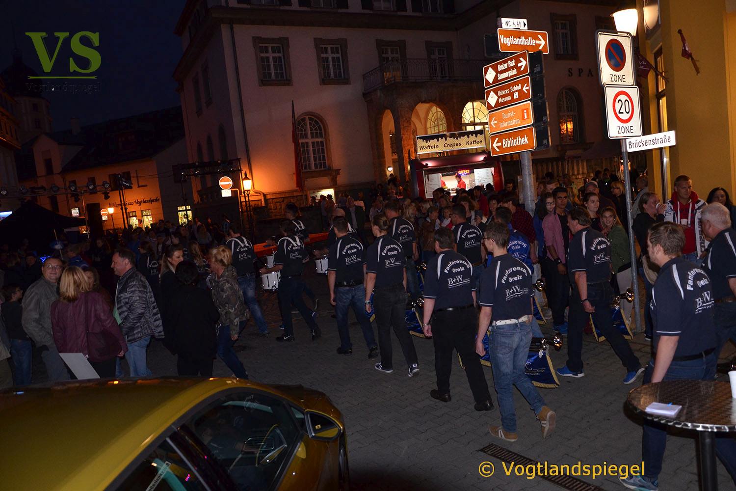 Der Greizer Fanfarenzug hat die Brückenstraße passiert.