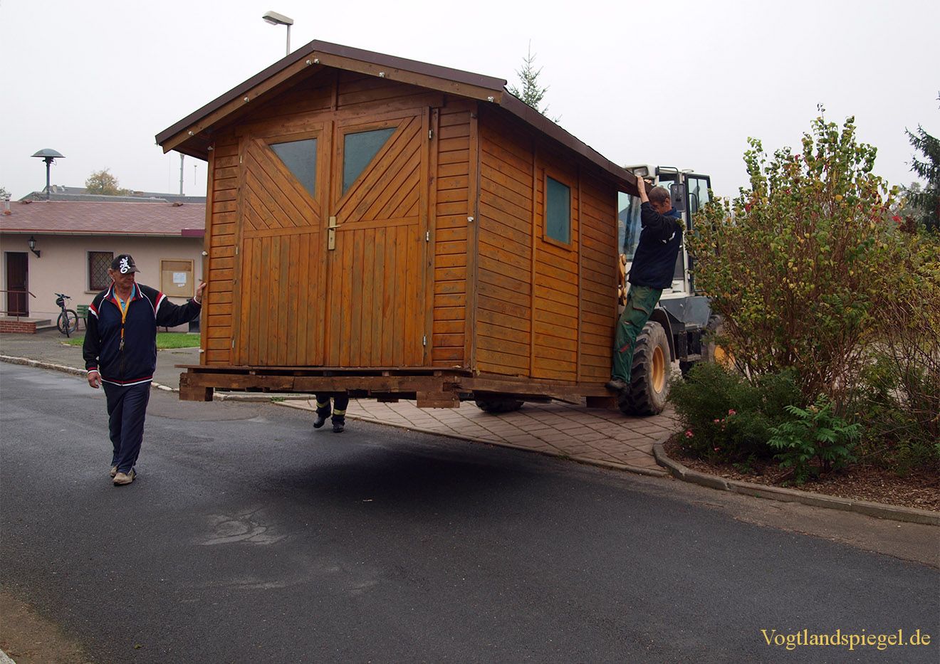 Handarbeit und schwere Technik waren bei der Umgestaltung der Verkehrsinsel am Ortseingang Gommla im Einsatz.