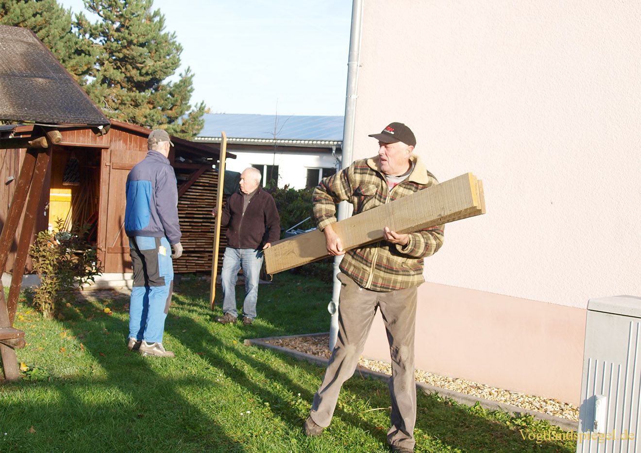 Feuerholzvorrat für das Vereinsheim des ASV Gommla 1882 wurde auf dem Sportplatz eingelagert.