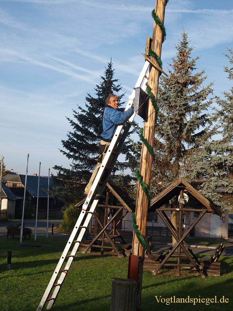 Die Kameraden der FFW Gommla legten den Gommlaer Maibaum fachmännisch um und konservierten ihn für das nächste Jahr.