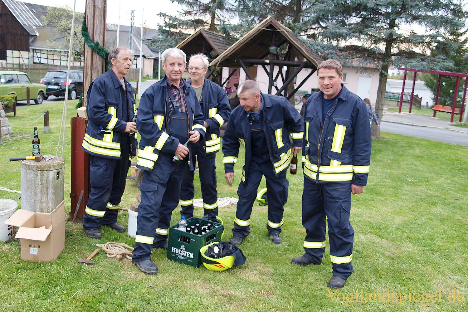 Gommlaer Maibaumstellen mit brennenden Hindernissen