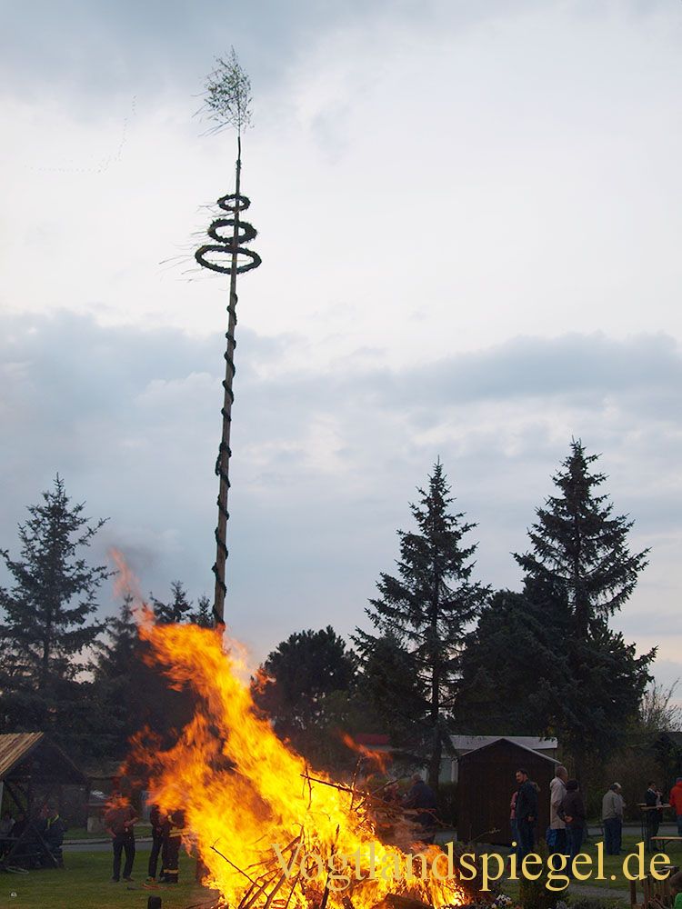 Gommlaer Maibaumstellen mit brennenden Hindernissen