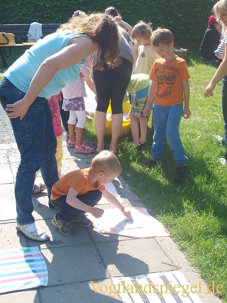 Auch die Jüngsten sind mit Eifer beim Papierschöpfen dabei.