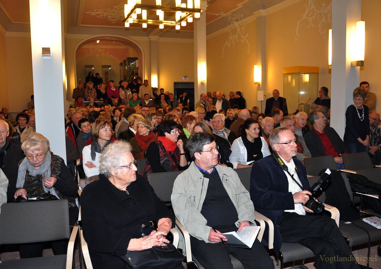 Dicht an dicht drängen sich die Gäste der Veranstaltung »Prominente im Gespräch« mit Gregor Gysi im Fürstensaal des Oberen Schlosses Greiz.
