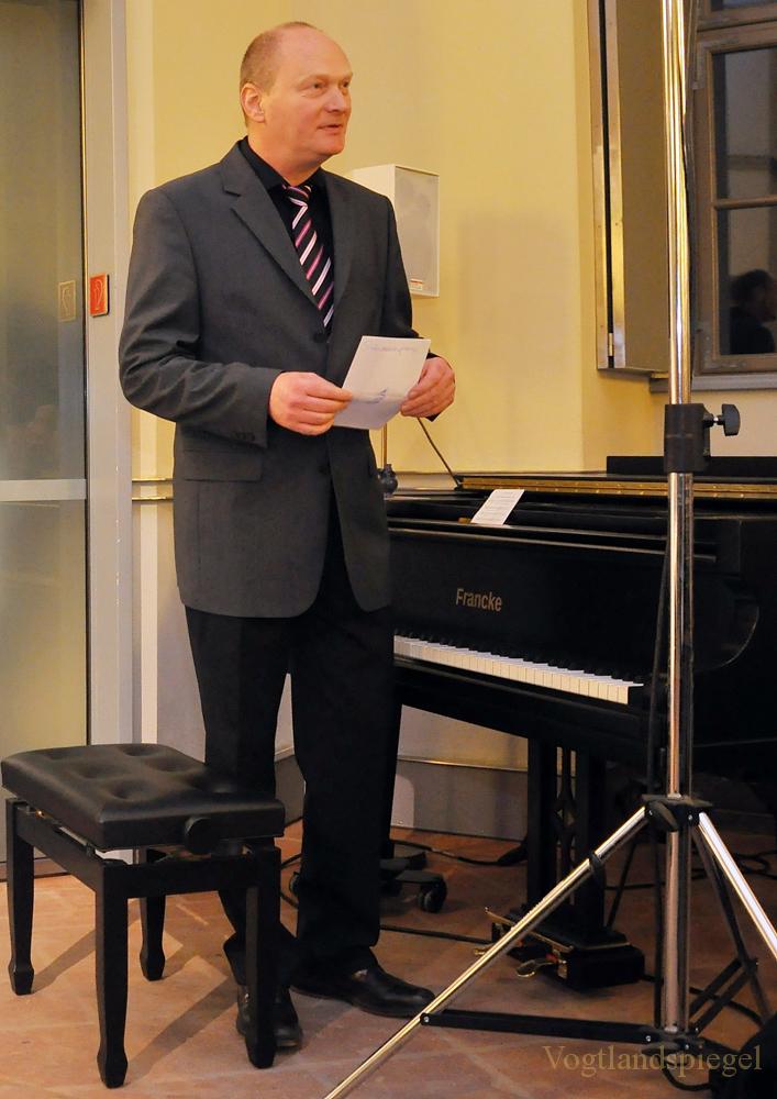 Kantor Ralf Stiller übernahm die musikalische Umrahmung der Veranstaltung »Prominente im Gespräch« im Fürstensaal des Oberen Schlosses Greiz.
