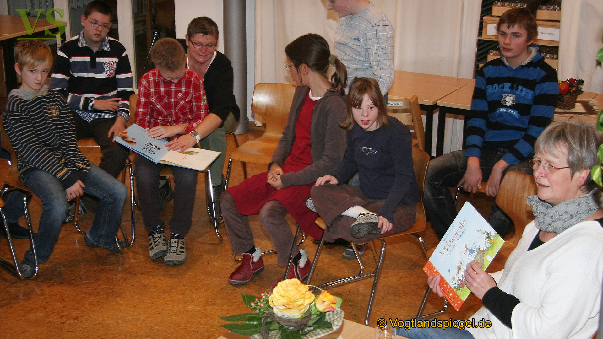 Barbara Jugel las in der Aula der Carolinenschule Obergrochlitz.
