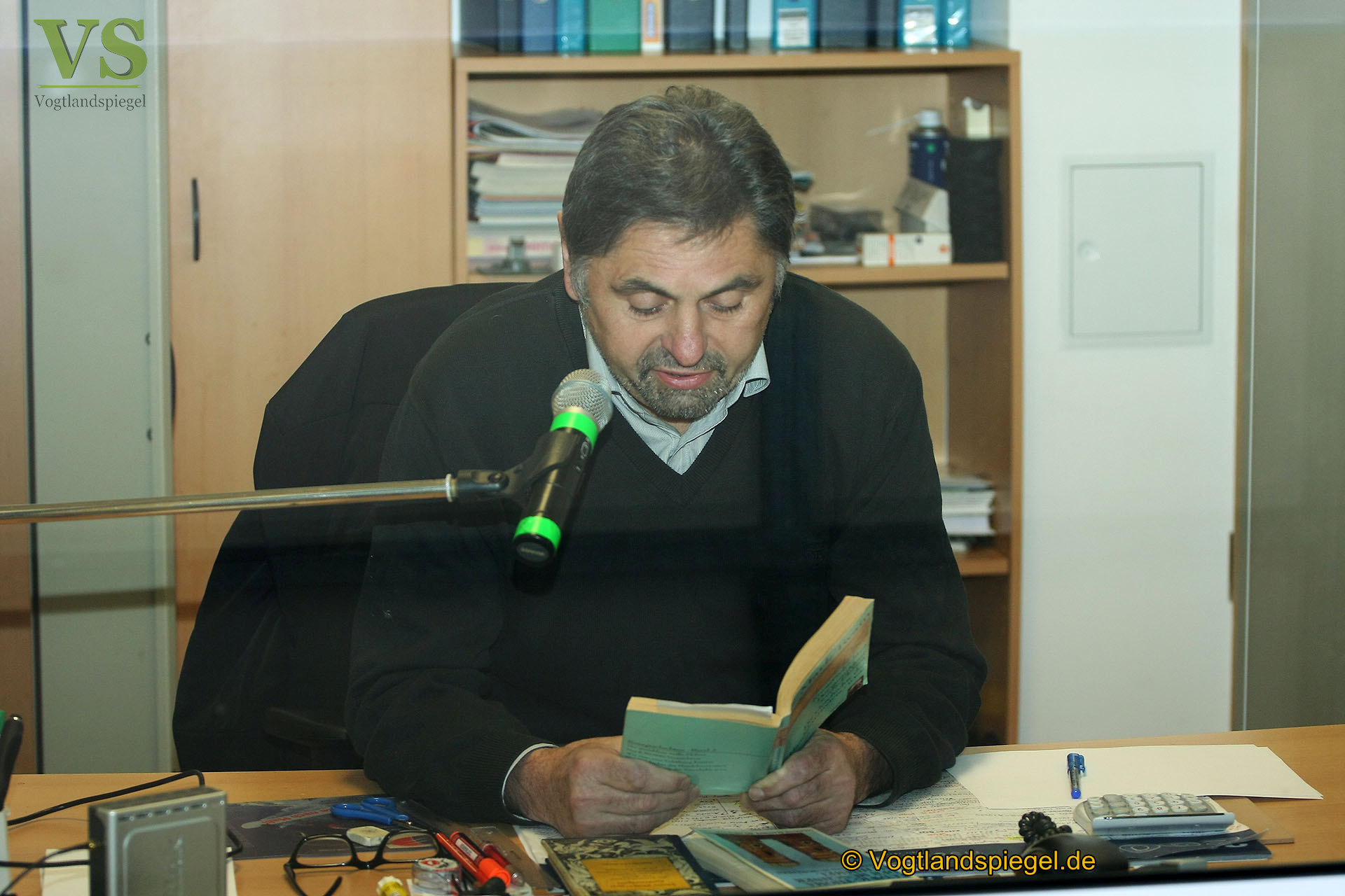 Bürgermeister Gerd Grüner las in der Greizer Eishalle