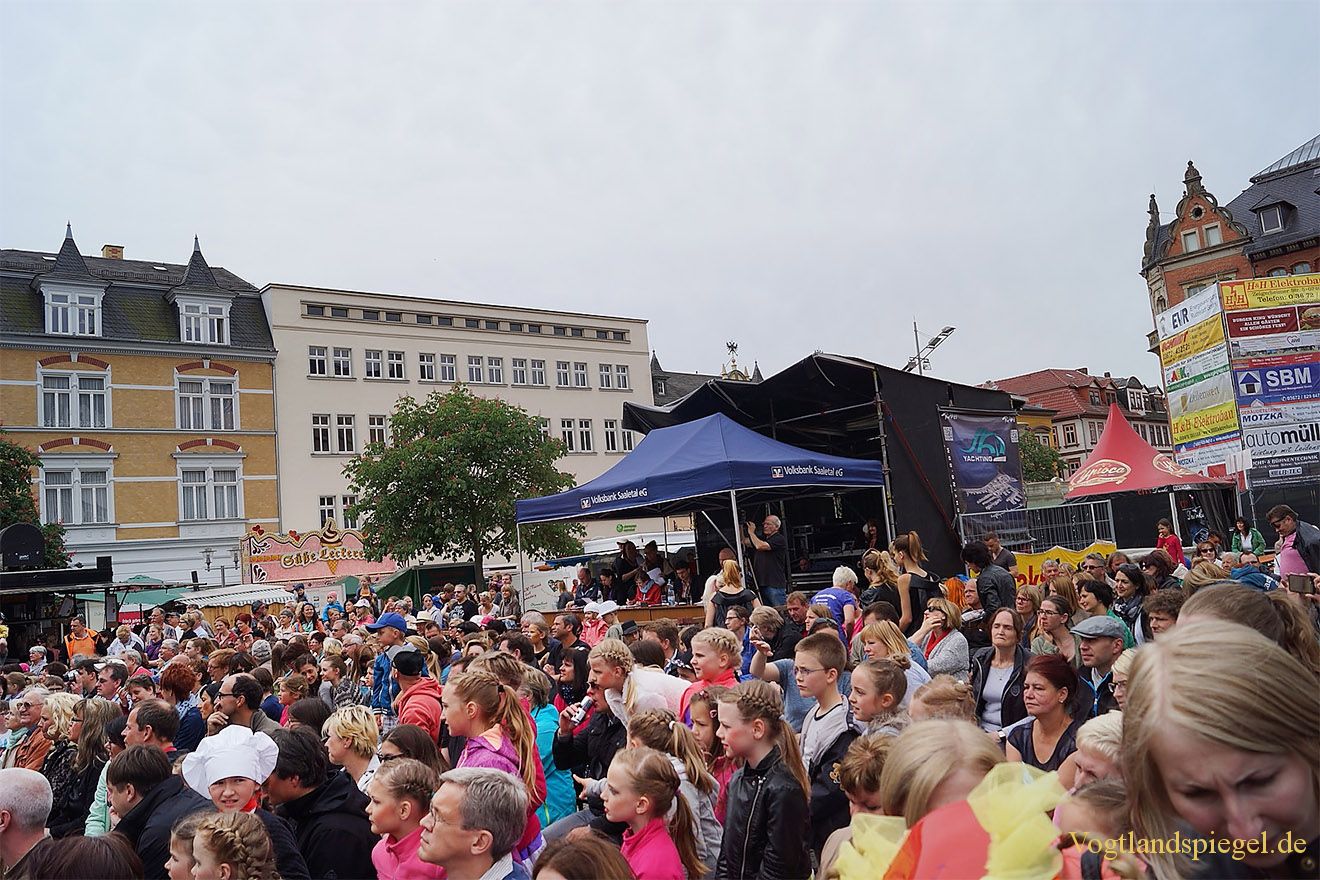 Eine Vielzahl von Gästen schaute sich den Rudolstädter Tanzwettbewerb auf dem Markt an.