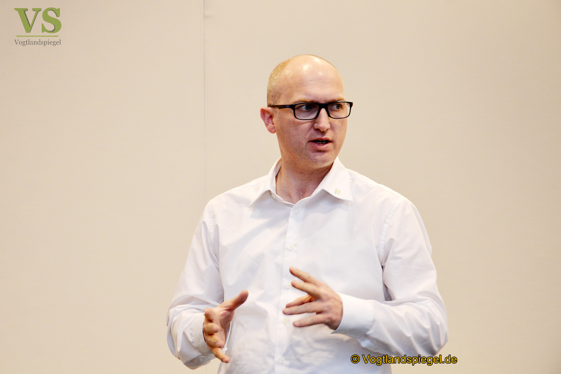 Dirk Heinze vom Tourismusverband Vogtland sprach zum Gaststättenwettbewerb „Kloßvogt“.