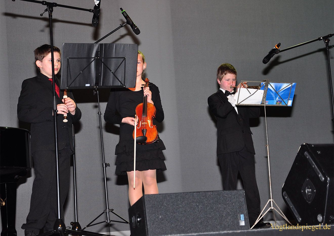 Aron Schmiedel (r.) an der Trompete, Ludwig Dörre (Blockflöte) und Maria Theresia Trahe (Violine)