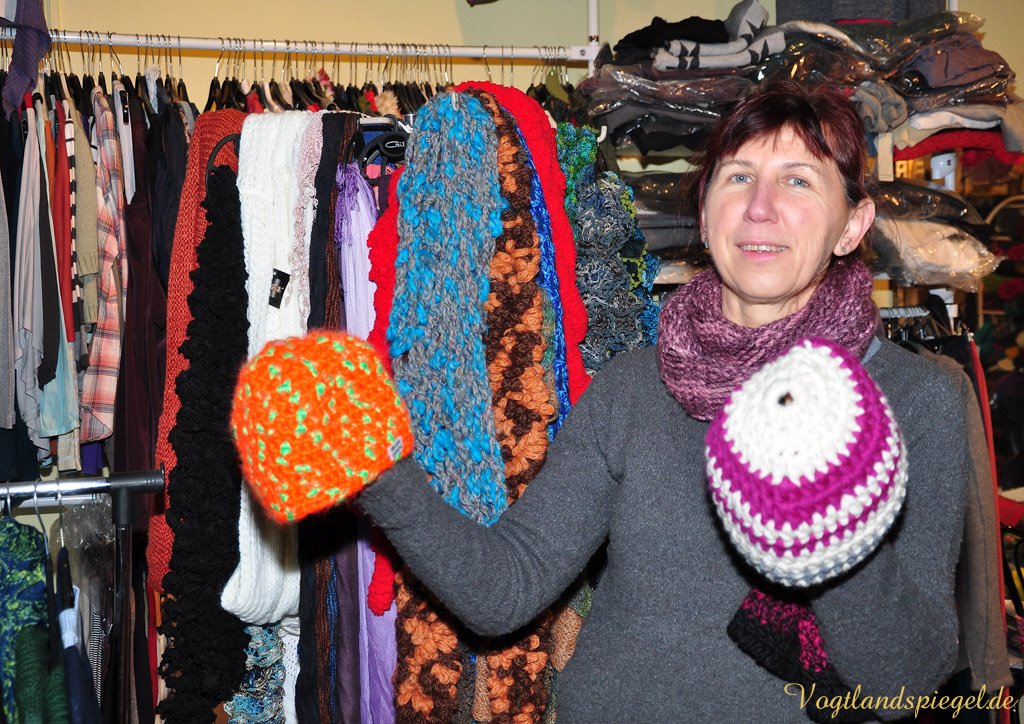 Christa Kausch vom Geschäft »Meine Masche« empfiehlt als Geschenk die selbst gehäkelten Boshi-Mützen.