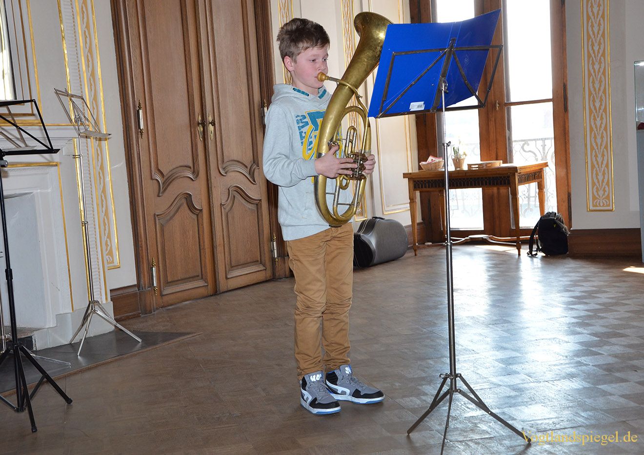 Aviel Krauße spielt auf dem Tenorhorn zwei kleine Stücke.