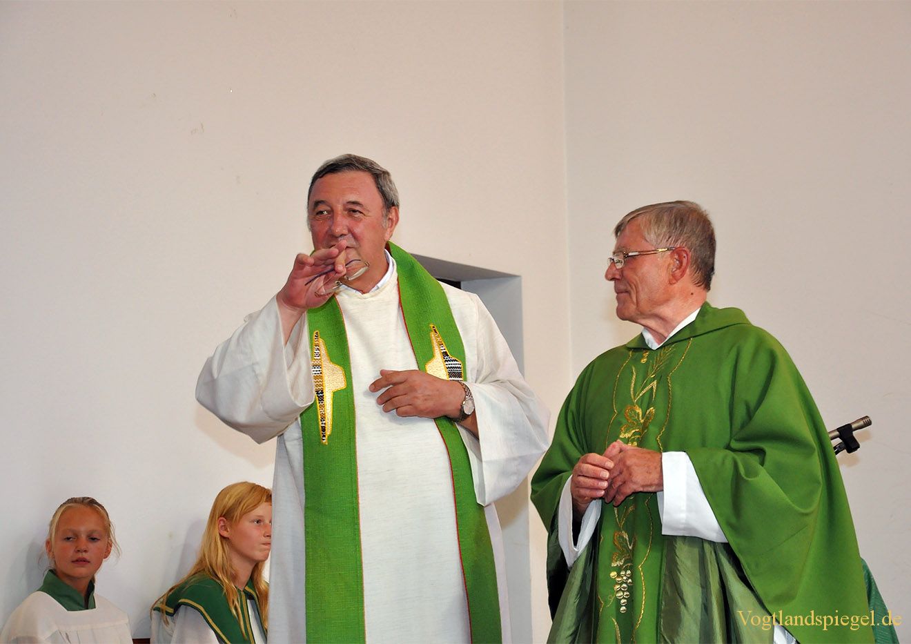 Dekan Klaus Schreiter bei seinen Abschiedsworten zu Pfarrer Dietmar Brosig (r.)