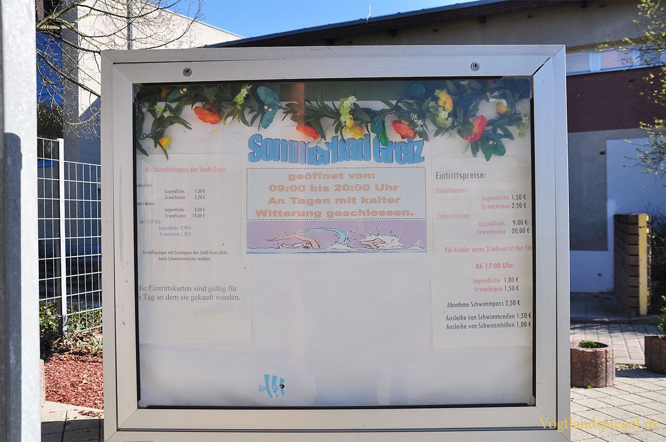 Öffnungszeiten und Preise des Greizer Sommerbades.