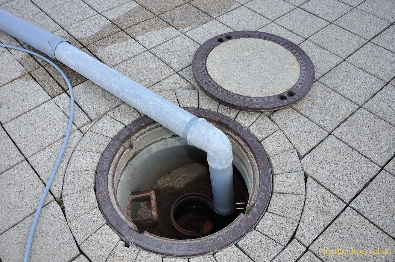 Aus der Adelheidquelle wird das Wasser in das Becken gelassen.
