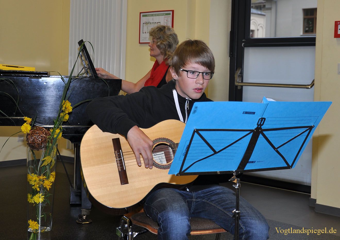 Erik spielt auf der Gitarre eine Romanze.