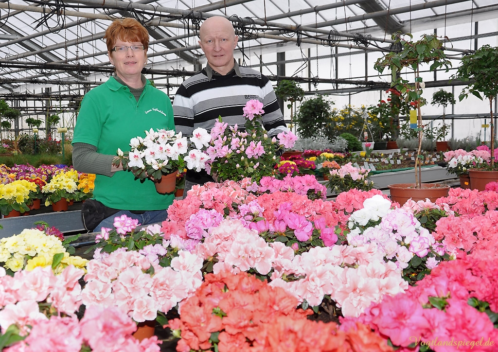 Greizer Vogtlandblumen GmbH präsentiert den FrühlingDer Geschäftsführer der Greizer Vogtlandblumen GmbH, Jan Käsmann und Ines Waltz präsentieren den Frühling.