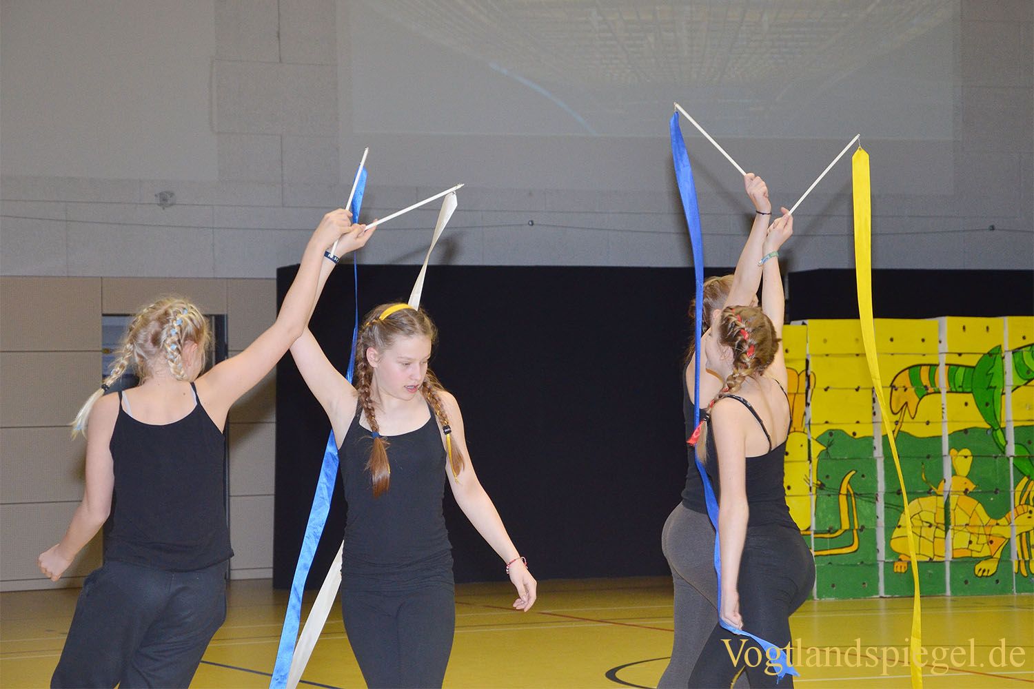 Grazie und Anmut vereinen sich beim gymnastischen Tanz der Schülerinnen.