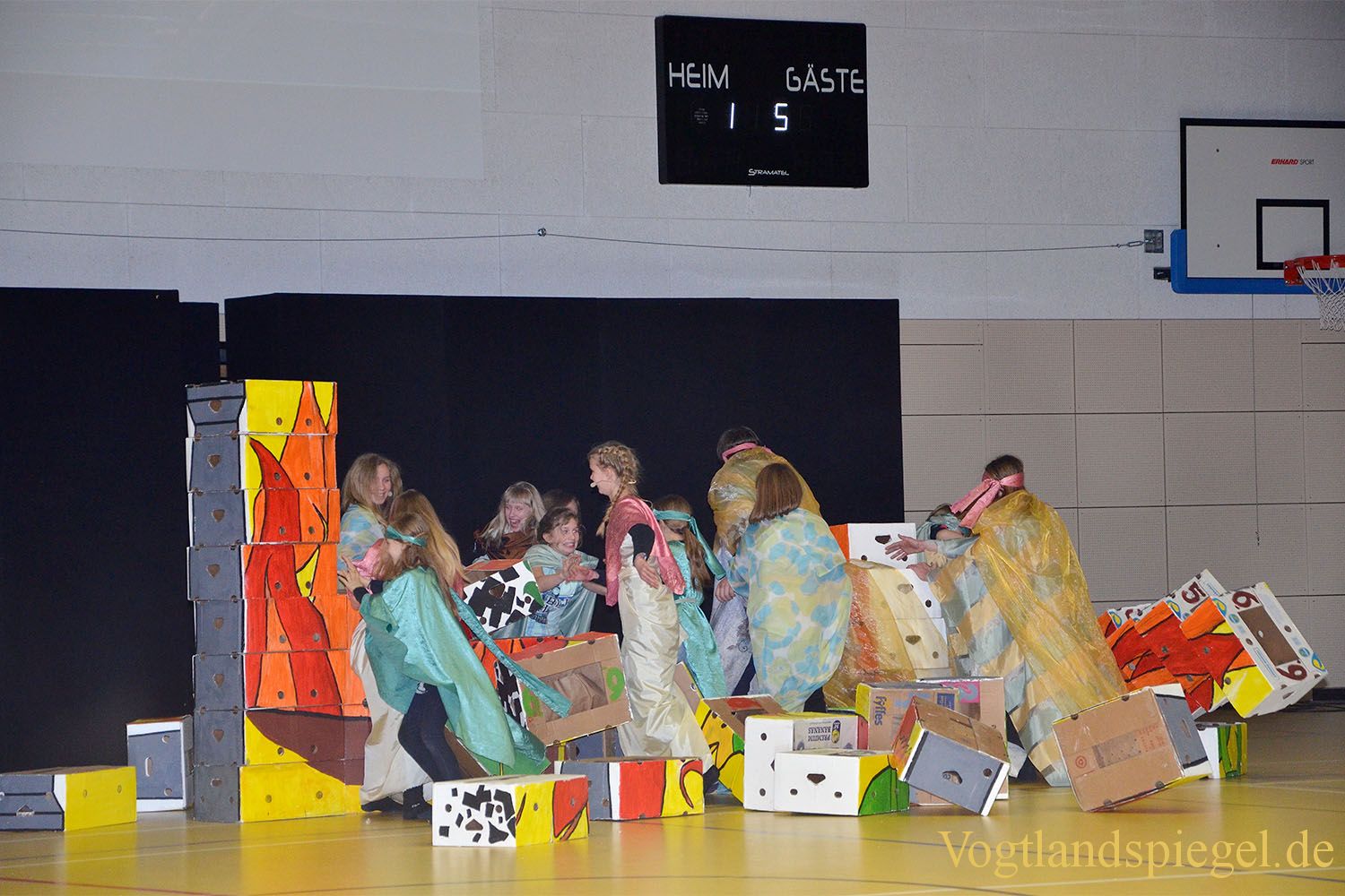 Aufführung des Sophokles-Stückes „Antigone“ unter Regie von Christoph Herrmann durch die Schauspielgruppe der Elstertalschule.