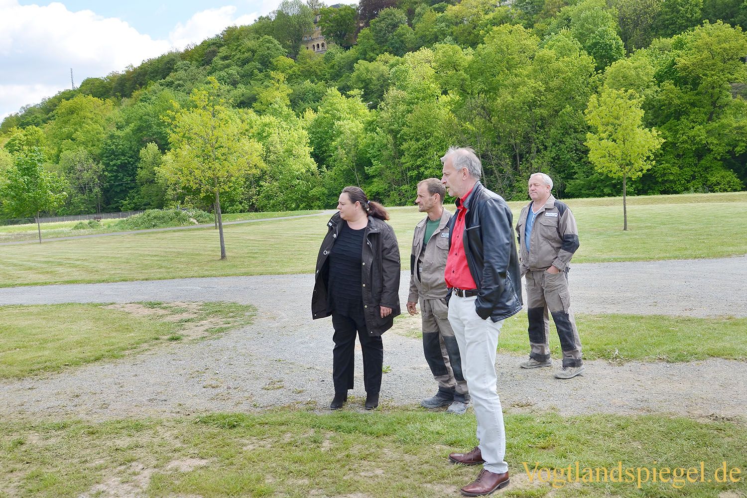 Jochen Eidner, Abteilungsleiter des Landratsamtes Greiz (vorn) und die Mitarbeiter der Firma Remus.
