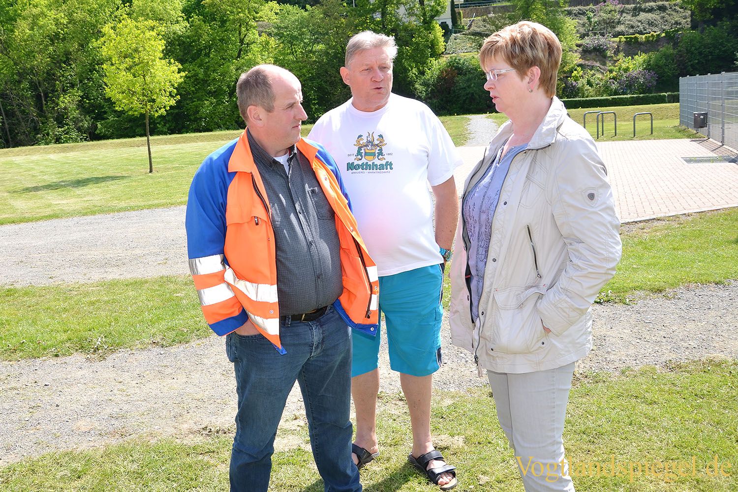 v.l. Bodo Scheffel, Anwohner Klaus Grebe und Esther Wolf im Gespräch.