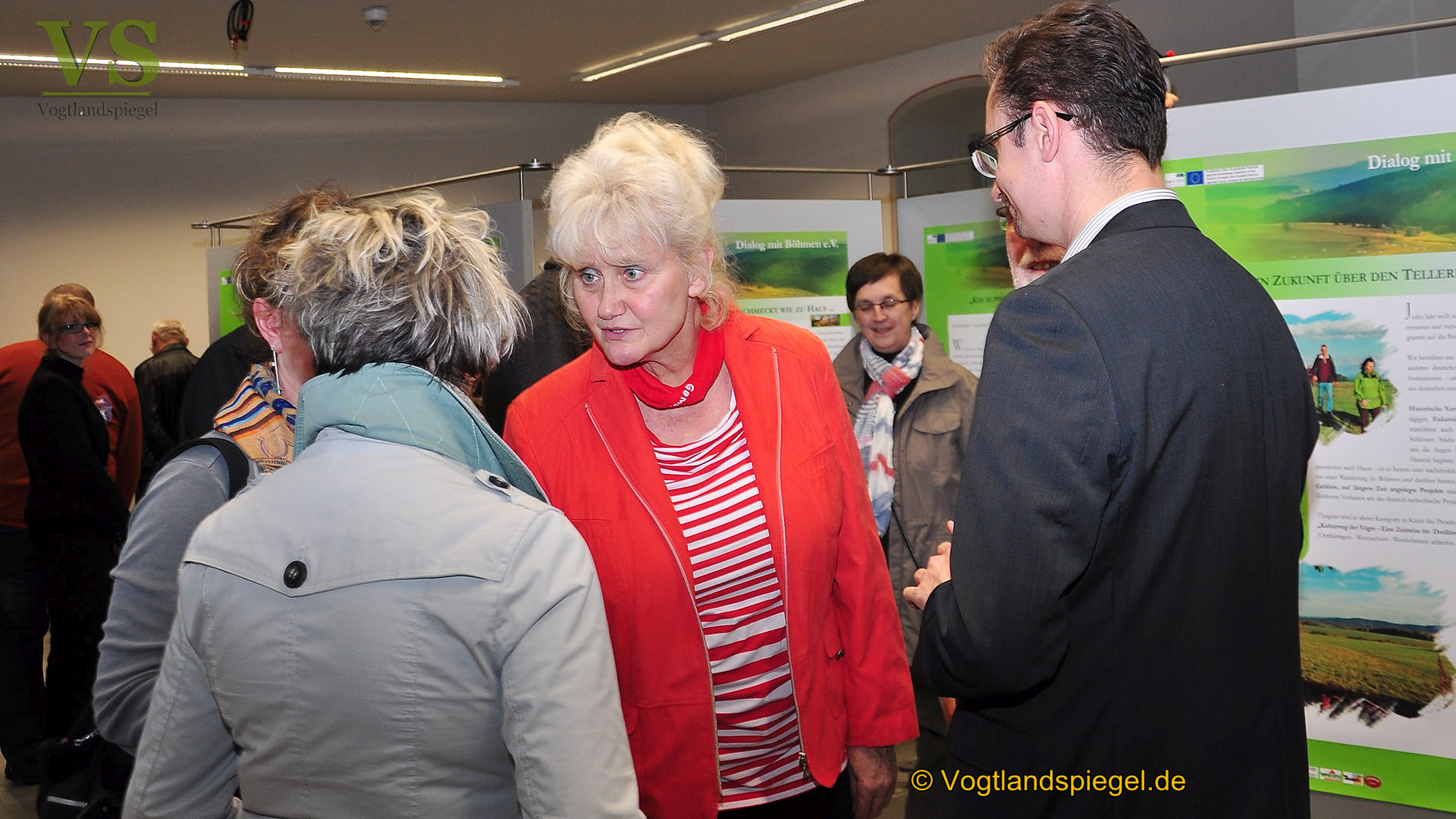 Interessiert betrachten die Gäste die Ausstellung „Raizefibr ins Nachbarland“ im Haus Nr. 6 des Oberen Schlosses Greiz.