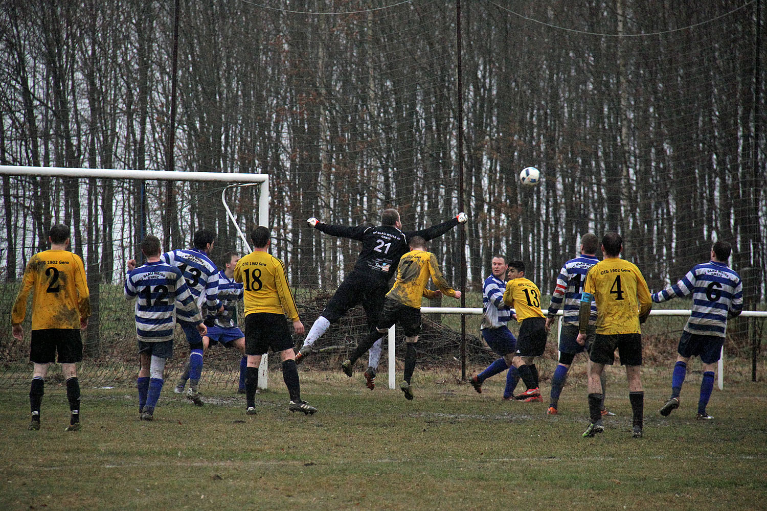 Kurz vor Spielende noch eine gefährliche Situation vor dem Kasten der Blau-Weißen, die aber Keeper Rene Dressler souverän mit der Faust klärte.