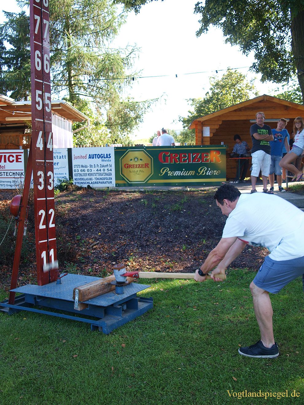 Kraft und Präzision verlangt das Spiel „Hau den Lukas“.