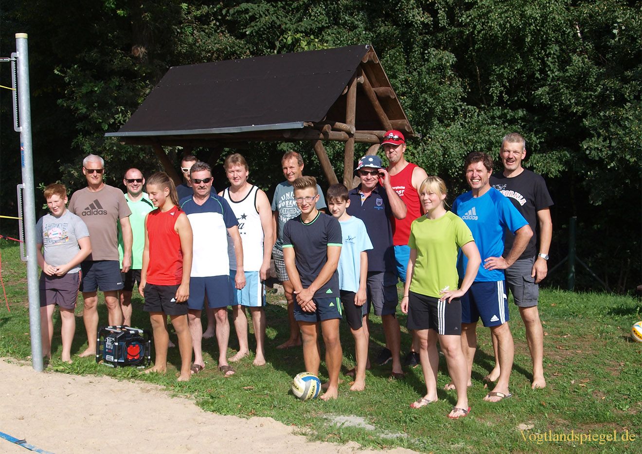 Die Teilnehmer des Beach-Volleyball-Turniers in Gommla.