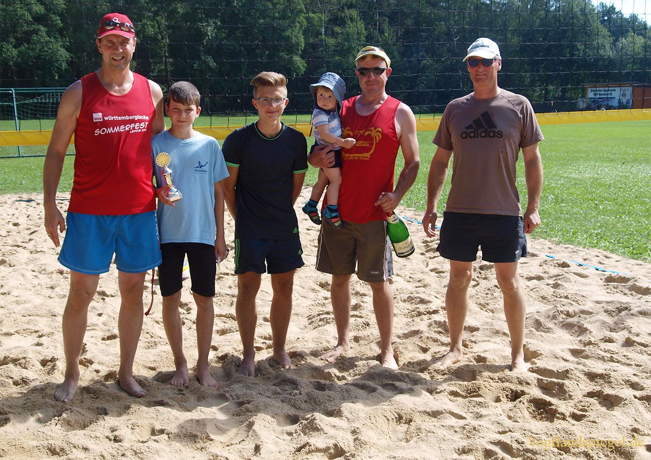 Die Gewinner des Beach-Volleyballturniers „Für jedermann“.
