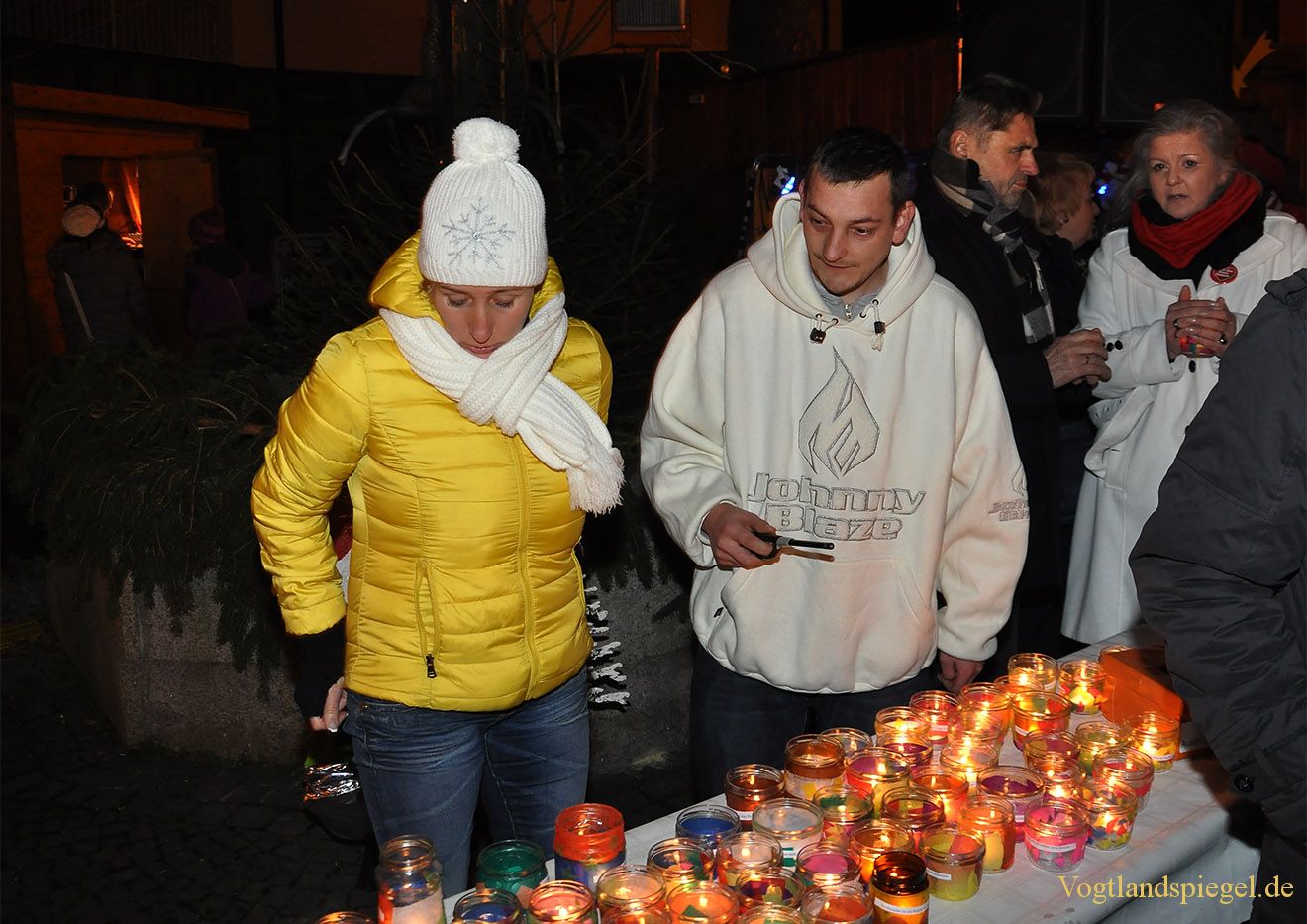 Über 500 Kerzengläser finden reißenden Absatz auf dem Greizer Kirchplatz.