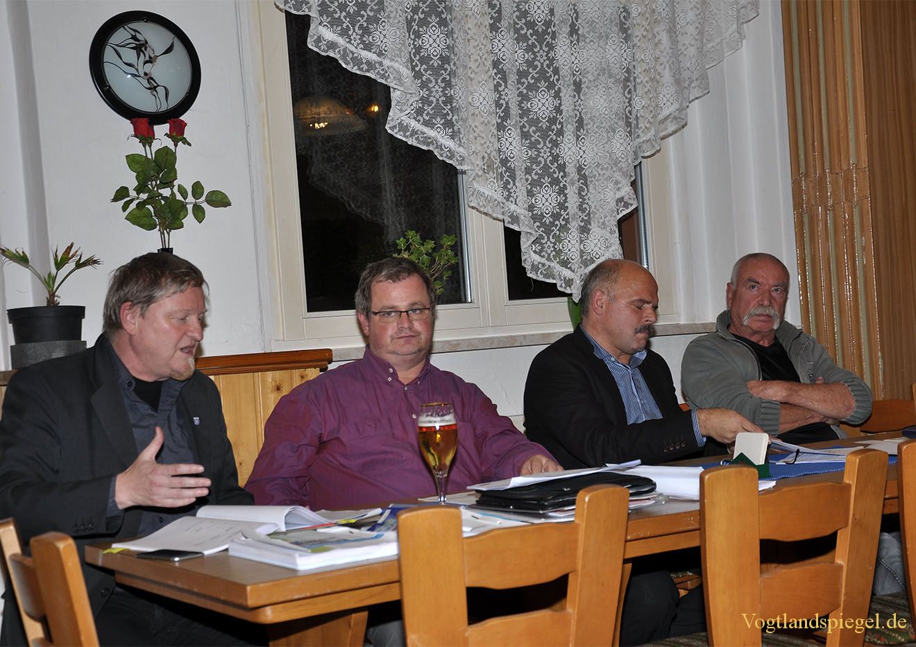 MdL Ralf Kalich (Die Linke) l. sprach zur Bürgerversammlung in der Obergrochlitzer Turnhalle.