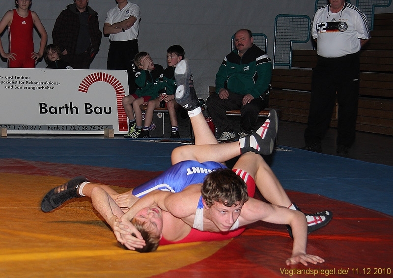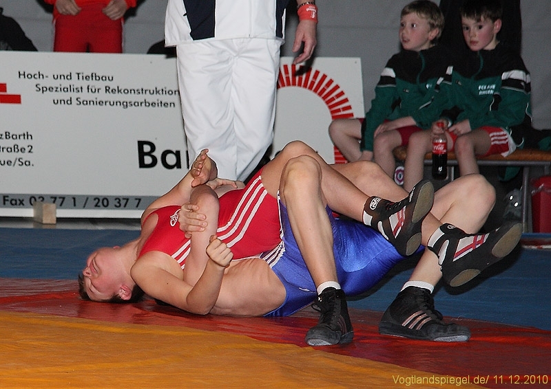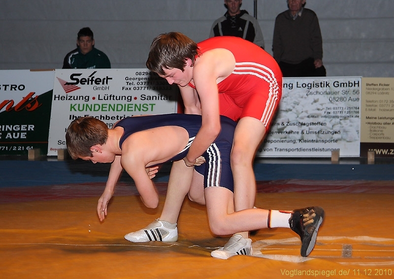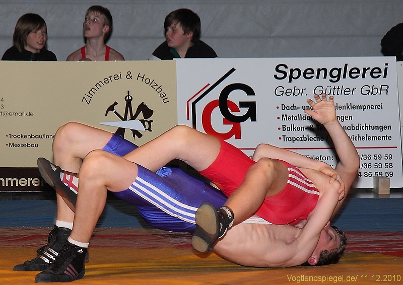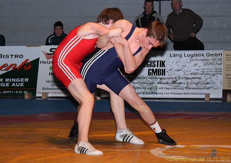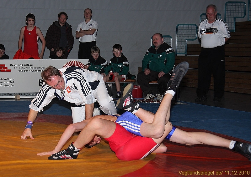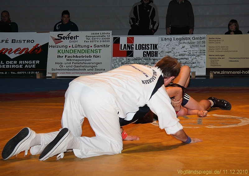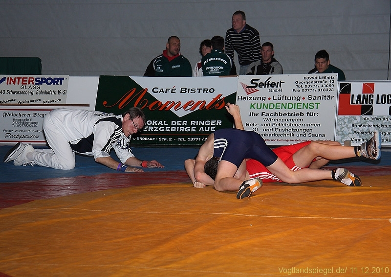 Der kämpferisch und technisch gut ringende Ron Watzek wurde kurz vor Rundenende überrascht und unterlag auf Schulter. Aue ging somit doch etwas überraschend in Führung.