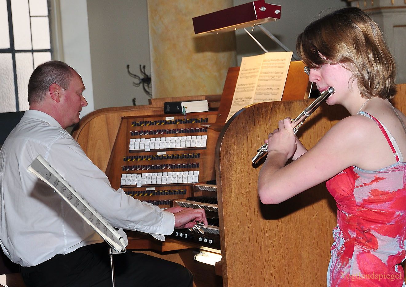 Stavenhagenpreisträgerin Friederike Heckmann (Querflöte) musiziert mit Kantor Ralf Stiller (Orgel).