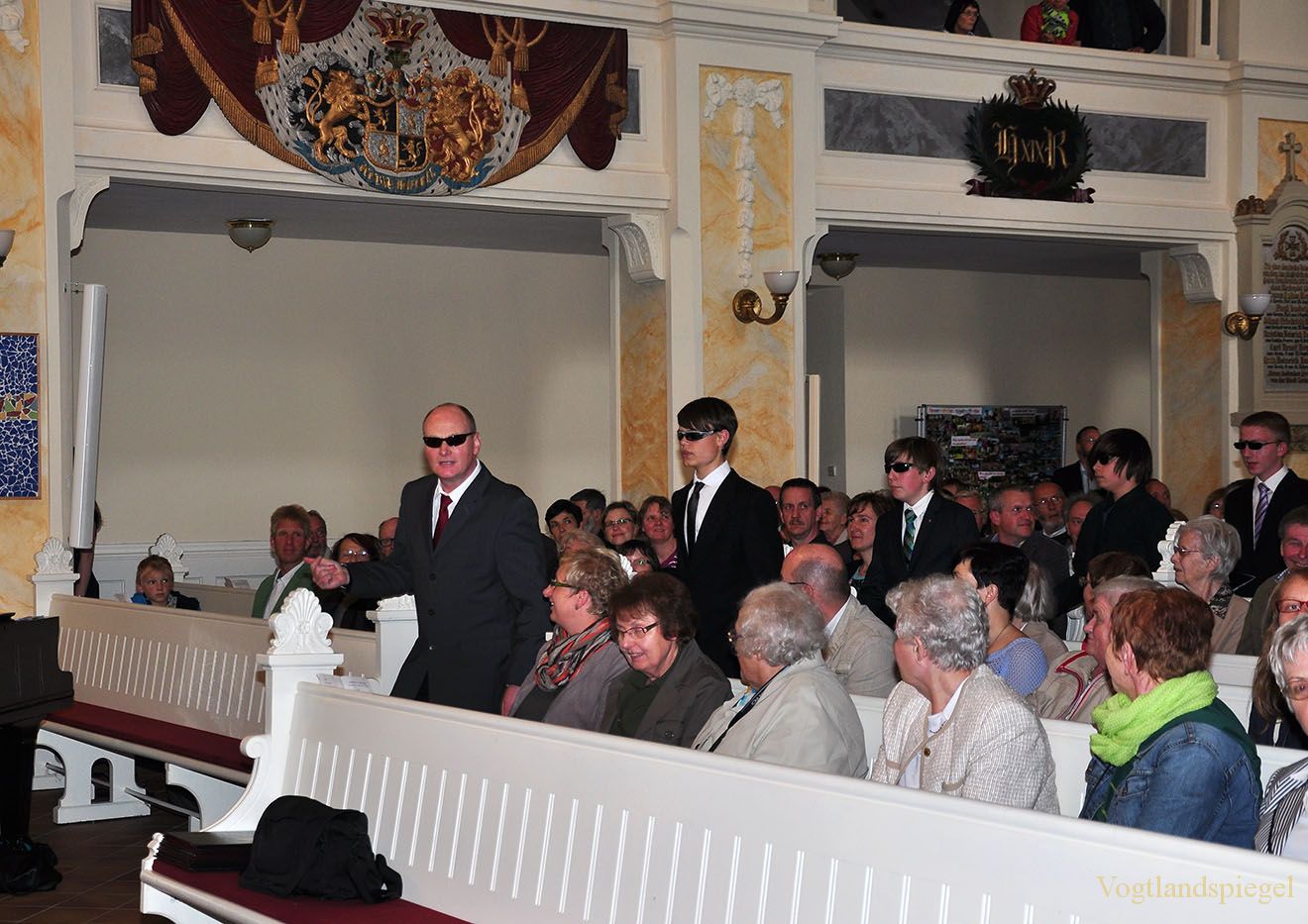 Einzug des Jugendchores an St. Marien in die Stadtkirche Greiz – allen voran Kantor Ralf Stiller.