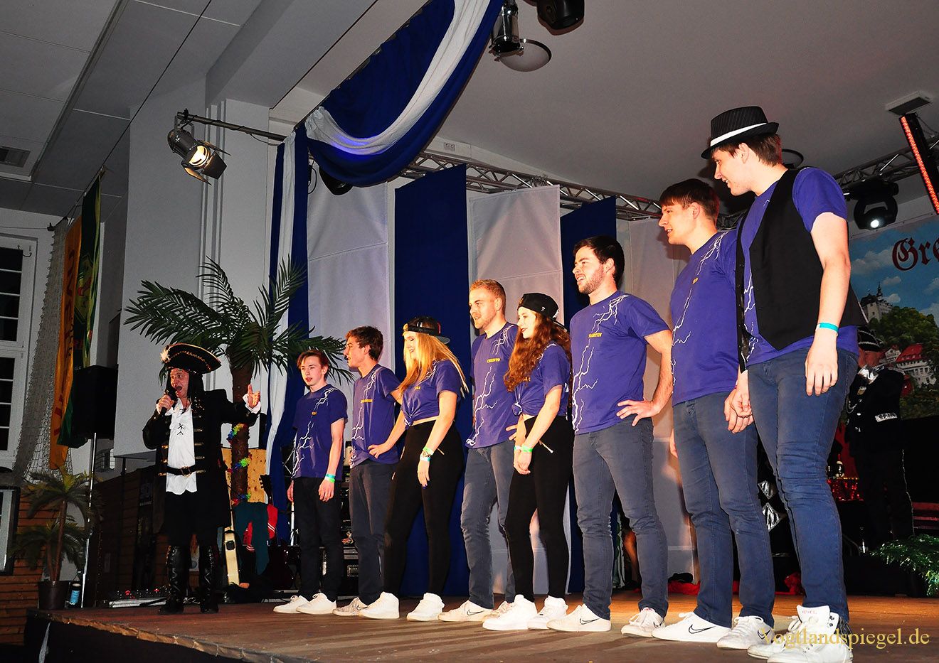 Captain Jack Sparrow (Peter Heckel) bedankt sich bei den „Jump your Style“-Tänzern aus Weida.