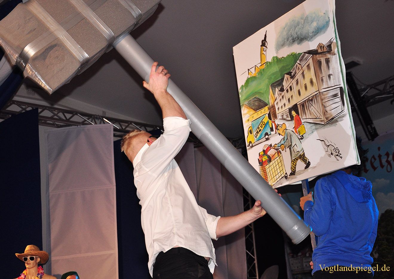 Mit dem großen Hammer wird die Altstadtgalerie zertrümmert.
