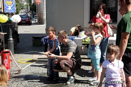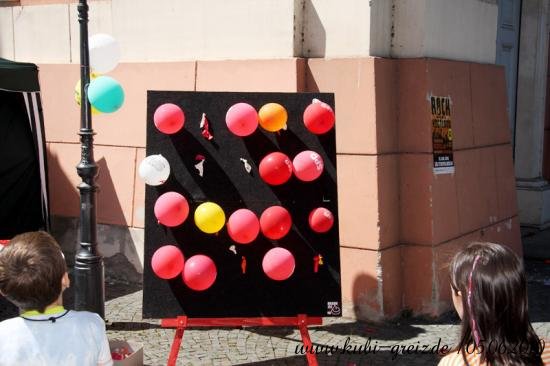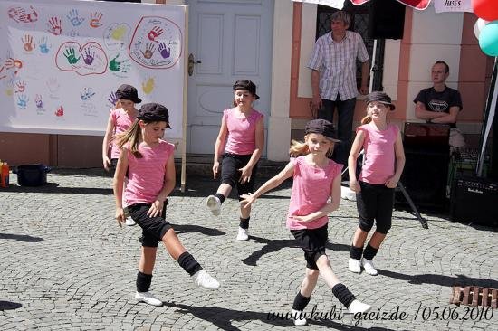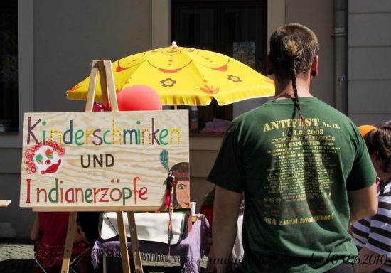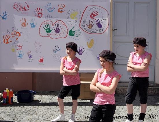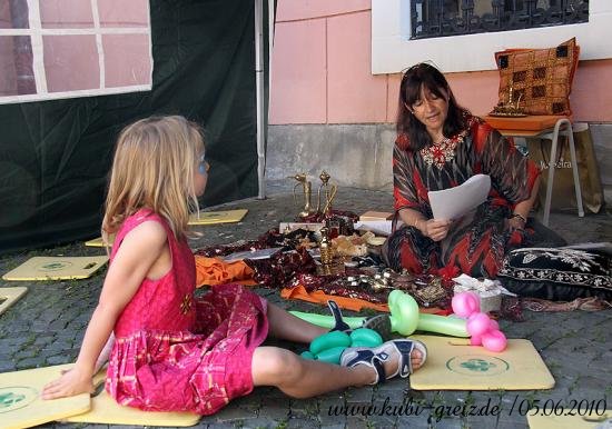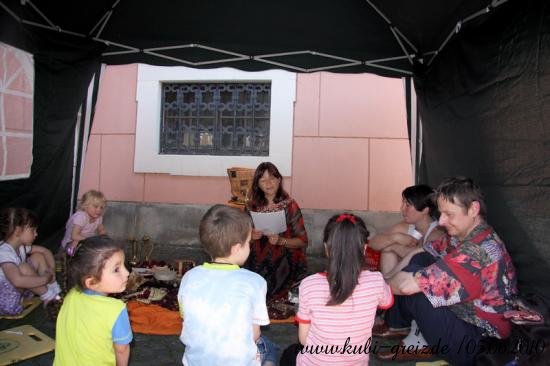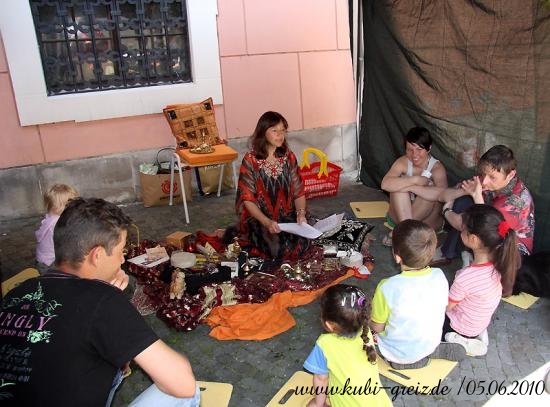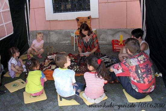 GREIZ. „Das Konzept ging voll auf“, resümierten die Organisatoren des Kinderfestes, das bei herrlichem Wetter am Sonnabendnachmittag auf dem Greizer Kirchplatz über die Bühne ging – nämlich die Idee, einheimische und Kinder von Asylbewerbern bei einer integrativen Veranstaltung zusammenzubringen und mit Vorurteilen und Klischees zu brechen. Gemeinsam mit der Projektgruppe Kulturbegegnung Thüringen, den Jugendlichen der AfA Greiz, den Jusos, dem Stadtjugendring Greiz e.V., dem Jugendclub Spektrum, mobit, dem Flüchtlingsrat, dem Cafe` o.k. sowie einem Dutzend Helfer lud der Greizer Kultur- und Bildungsverein KuBi ein. Natürlich standen Spiel und Unterhaltung ganz oben auf der Wunschliste der Jüngsten. Ob auf der Riesen-Hüpfburg, beim Luftballon-Dart, Malen, Ballonformen, beim Dosenspritzen und Buttonbasteln, am Büchertisch oder Großfeldschach an jede Altersgruppe wurde gedacht. Die zehnjährige Minaya freute sich besonders über die bunten Indianerzöpfe, die Claudia ihr flocht. Die Kleinsten amüsierten sich über Teddy und Baby im Freigehege, zwei putzige Meerschweinchen, die liebevoll von allen gestreichelt wurden. Spielen und Beschäftigen machen natürlich Hunger. Leila aus dem Iran hatte die ganze Nacht gekocht, wie sie lächelnd zugab. Bizh-Bizh hieß das köstliche Gericht, das aus Reis und einer Hackfleischsauce bestand und an alle Familien kostenlos verteilt wurde. Am Nachmittag konnten sich die Festbesucher dann auch von den Backkünsten Djamilas überzeugen. Fünf köstliche Torten fanden reißenden Absatz. Für kulturelle Unterhaltung sorgten die Minigarde der Greizer Faschingsgesellschaft mit dem niedlichen Tanz Liebe in der Steinzeit und die Kindergarde mit einem Hip Hop. Mit viel Rhythmus konnten auch die Flotten Spektruaner, eine aus fünf Mädchen bestehende Tanzgruppe, überzeugen. Für die leisen Töne des Festes sorgte Andrea Hassan. Sie stammt aus Zeulenroda und lebt seit 1984 in Dubai; sieht sich selbst als Vermittlerin zwischen den beiden Welten. Mit dem orientalischen Märchen Die kleine Laterne zog sie im Vorlesezelt, das auch mit vielen fremdländischen Accessoires dekoriert war, nicht nur die Jüngsten in ihren Bann. Die größte Arbeit hatte an diesem Nachmittag das Team des Cafe` o.k., allen voran Ursula Rudorf, das Unmengen von Geschirr zu bezwingen hatte. Dafür herzlichen Dank, so Mitorganisatorin Evi Welcher, ebenso der Stadt Greiz für die Unterstützung.