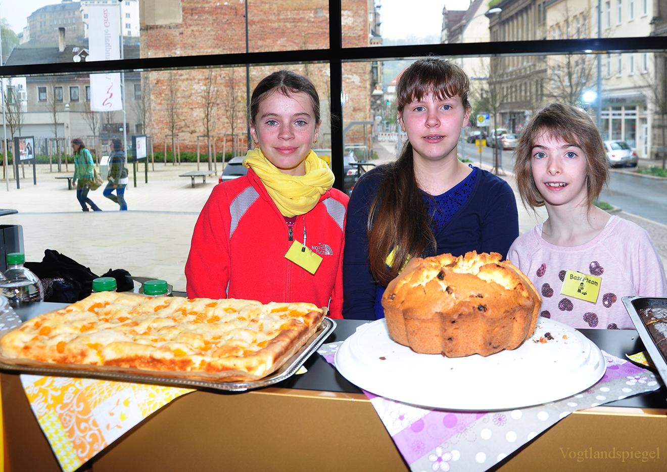 Diese fleißigen jungen Mädchen betreuen den Kuchenstand zum Kindersachenbasar in der Vogtlandhalle Greiz.