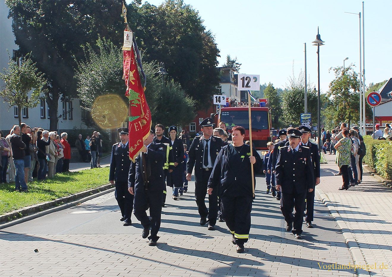 Die Feuerwehr aus Berga kommt mit ihren Kameraden.