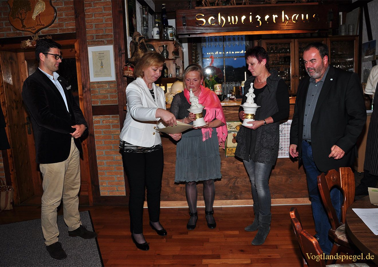 Herzliche Glückwünsche von Landrätin Martina Schweinsburg (l.) und Mario Walther für Petra Rocktäschel-Darger (2.v.l.) und Kerstin Friedrich.