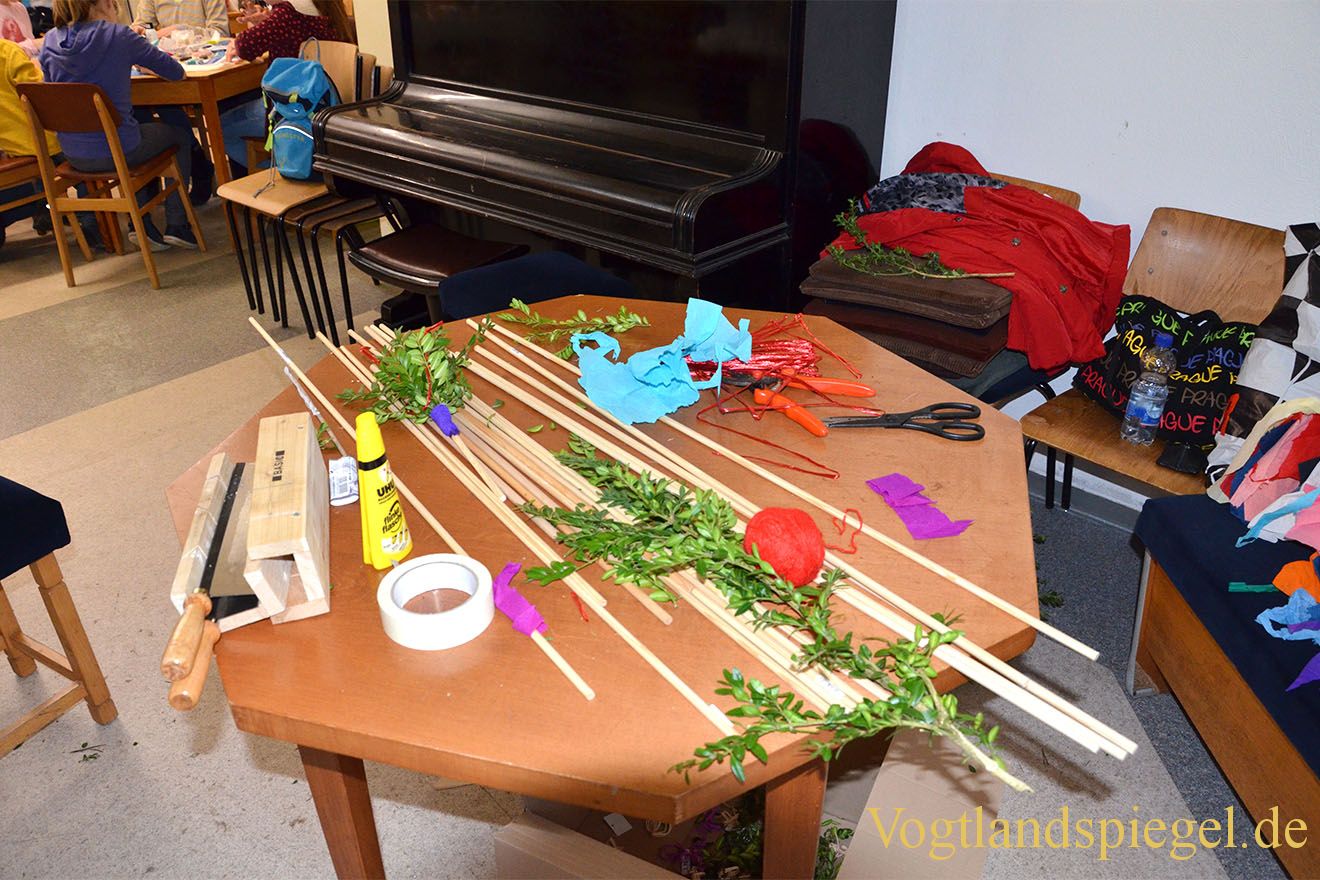 Palmwedel binden gehörte auch zu den Angeboten des KreAktivTages im Gemeindesaal der Herz-Jesu-Gemeinde.