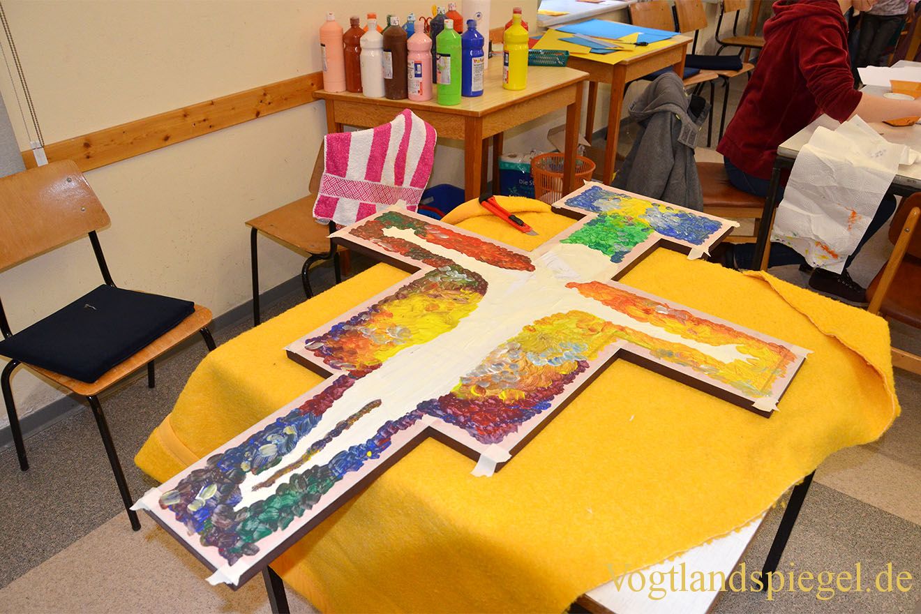 Dieses Kreuz gestalten die Kinder gemeinsam mit Pfarrer Christoph Behrens.
