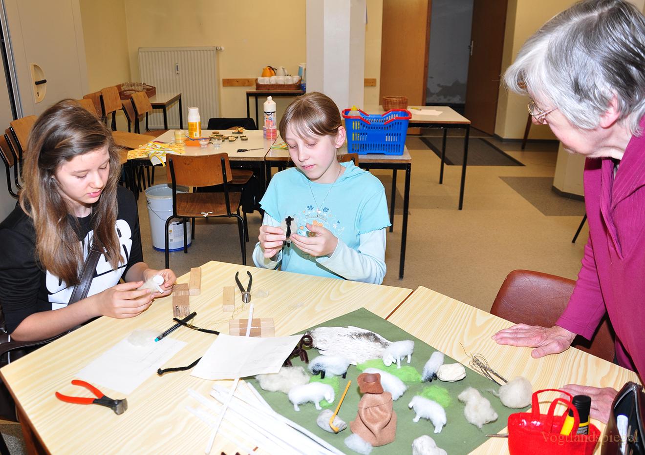 Kleine Wollschäfchen konnte man bei Frau Bauer und Frau Schulze basteln.