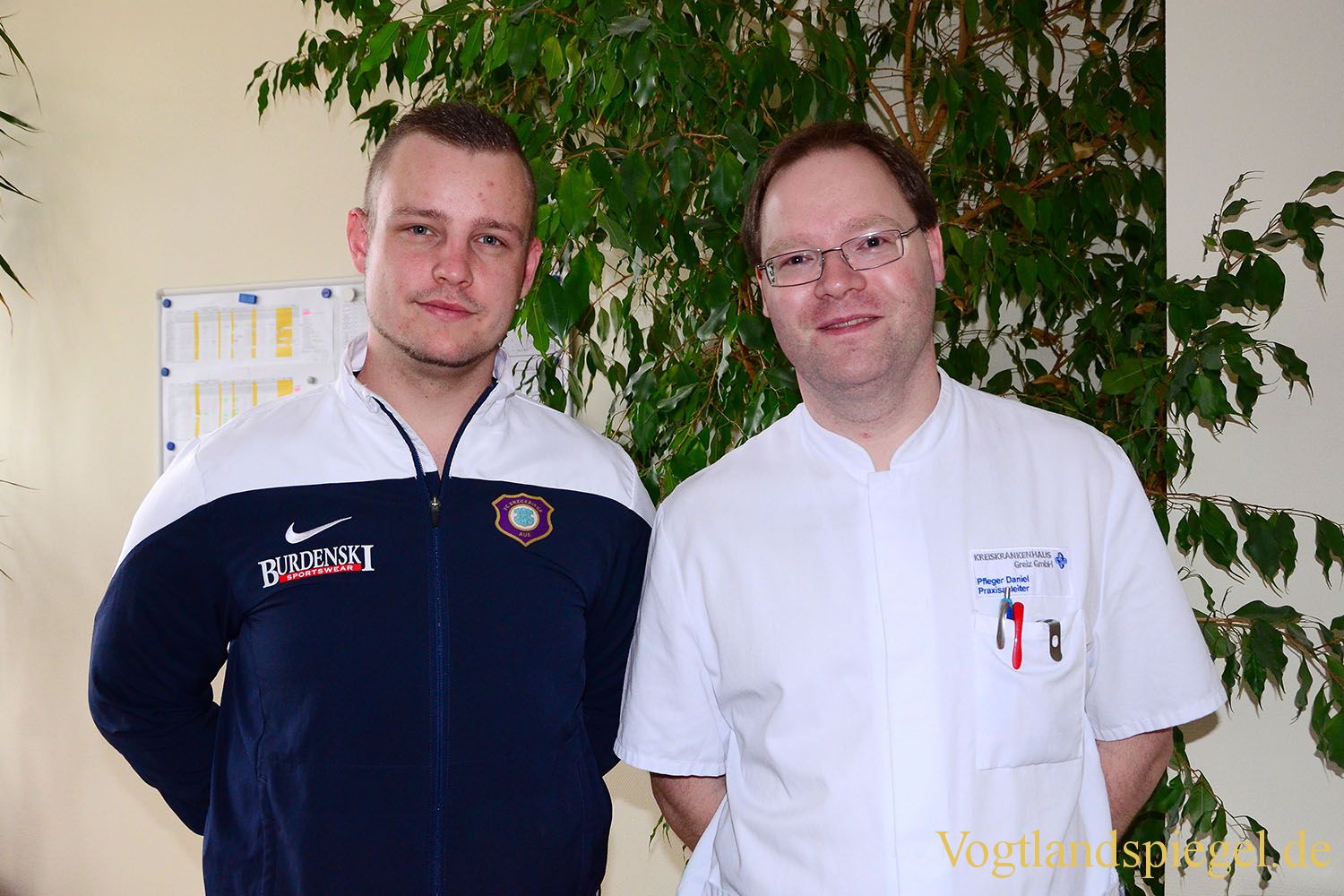 Phillip Seifert (l.) hier it Praxisanleiter Daniel Legl möcjte nach der Prüfung gern am Kreiskrankenhaus arbeiten.