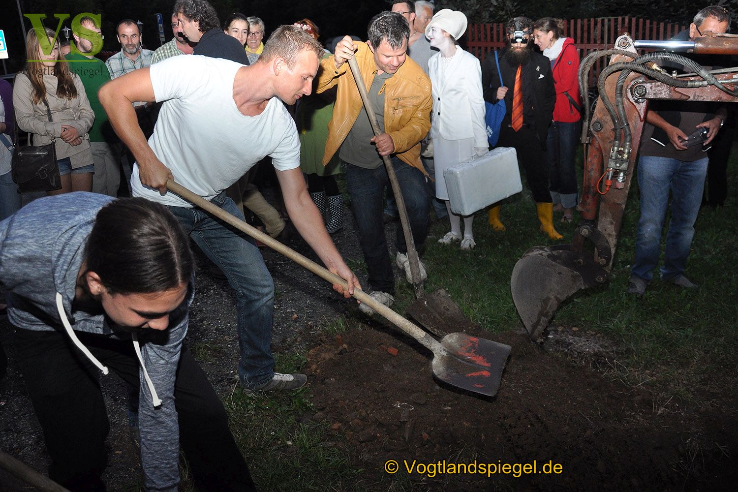 Viele Überraschungen gab es zur Kulturführung durch die Alte Papierfabrik Greiz. Nun wird die Erde von Hand plan gemacht.