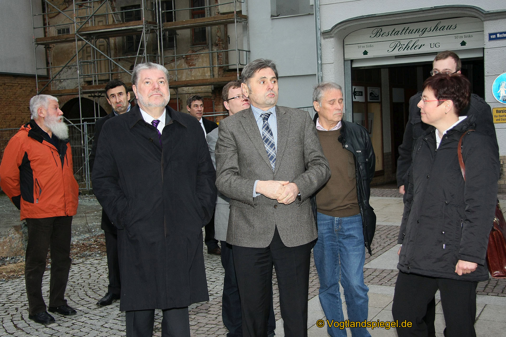 Der rheinland-pfälzische Ministerpräsident Kurt Beck wird von Bürgermeister Gerd Grüner durch die Stadt geführt.