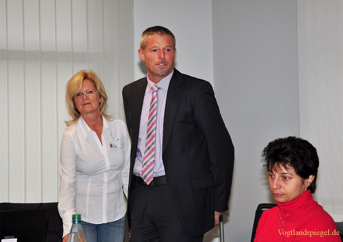 Der Wirtschaftsförderer des Landkreises Greiz, Steffen Täubert, begrüßt die Anwesenden. Links im Bild Pflegedienstleiterin Christiane Jähnert.